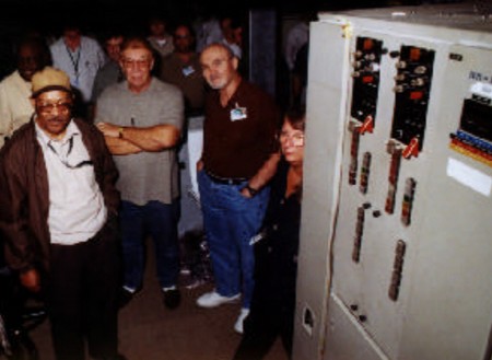 The box on the right is the Refresh Memory Input Output Control (RMIOC). It is the interface between the Data Processing Subsystem and the Refresh Subsystem. This photo was taken at the North Dighton, MA plant where the system was built and where we trained for our field assignments. The facility was housed in an old cotton plant and between 1901 and 1951 was one of the largest in the world. | ![]() Photo courtesy of Mike Holmen | |