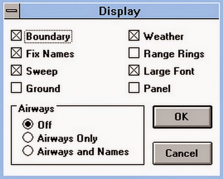 Next select RADARSCOPE | DISPLAY and choose your personal preferences for your scope. "Large Font" is mandatory for my old tired eyes. If you like the traditional radarscope view, select "Panel".